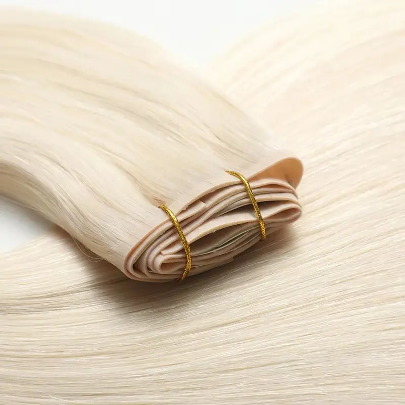 لحمات مسطحة بدون خياطة: تصميم لحمة رفيعة للغاية ومسطحة يمتزج بسلاسة مع الشعر الطبيعي، مما يحقق لمسة نهائية غير قابلة للاكتشاف تبدو طبيعية وملمسها.